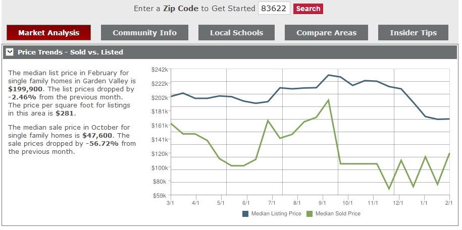 Home Prices - Compare zip codes in Garden Valley Idaho 2013